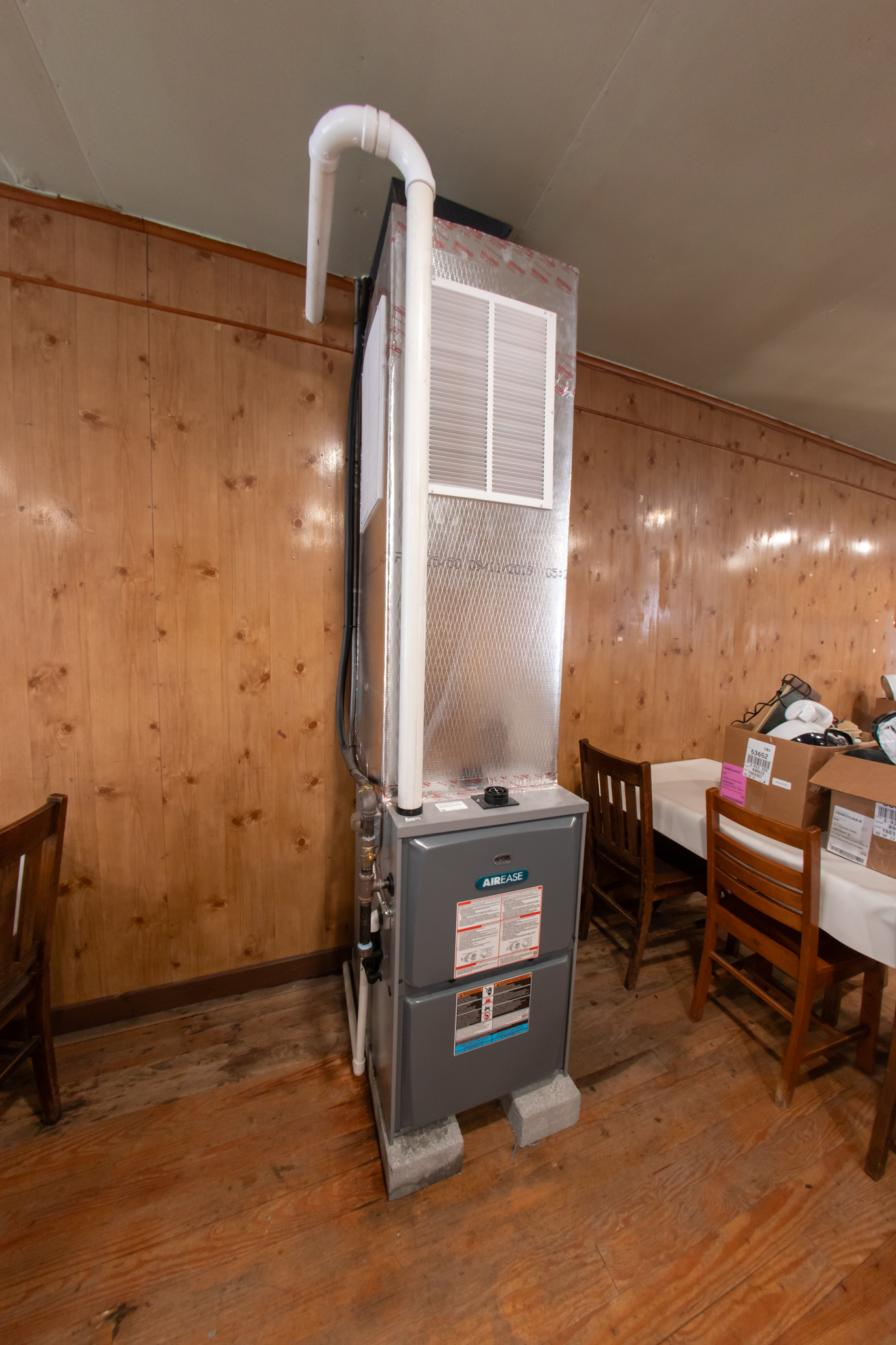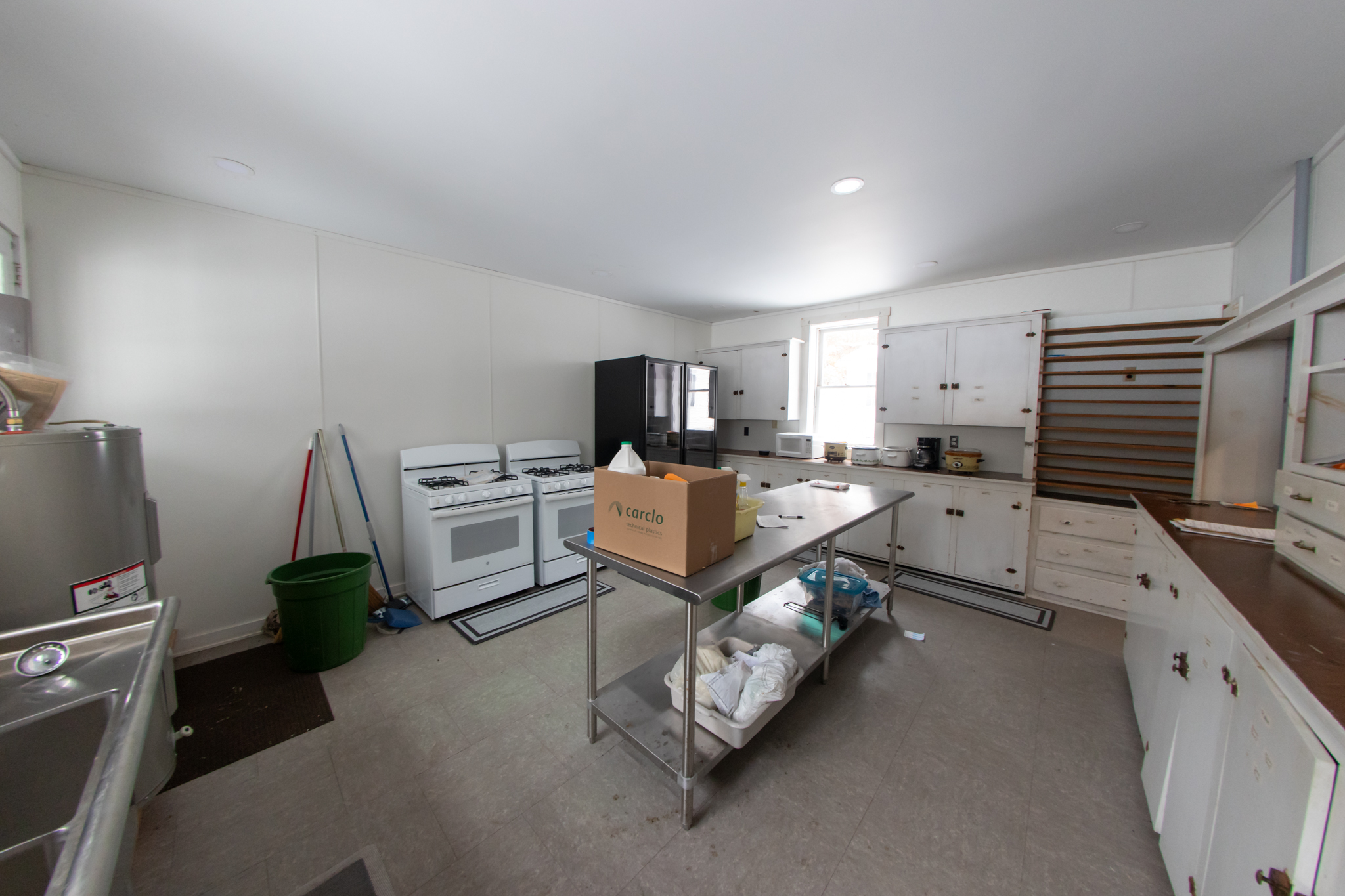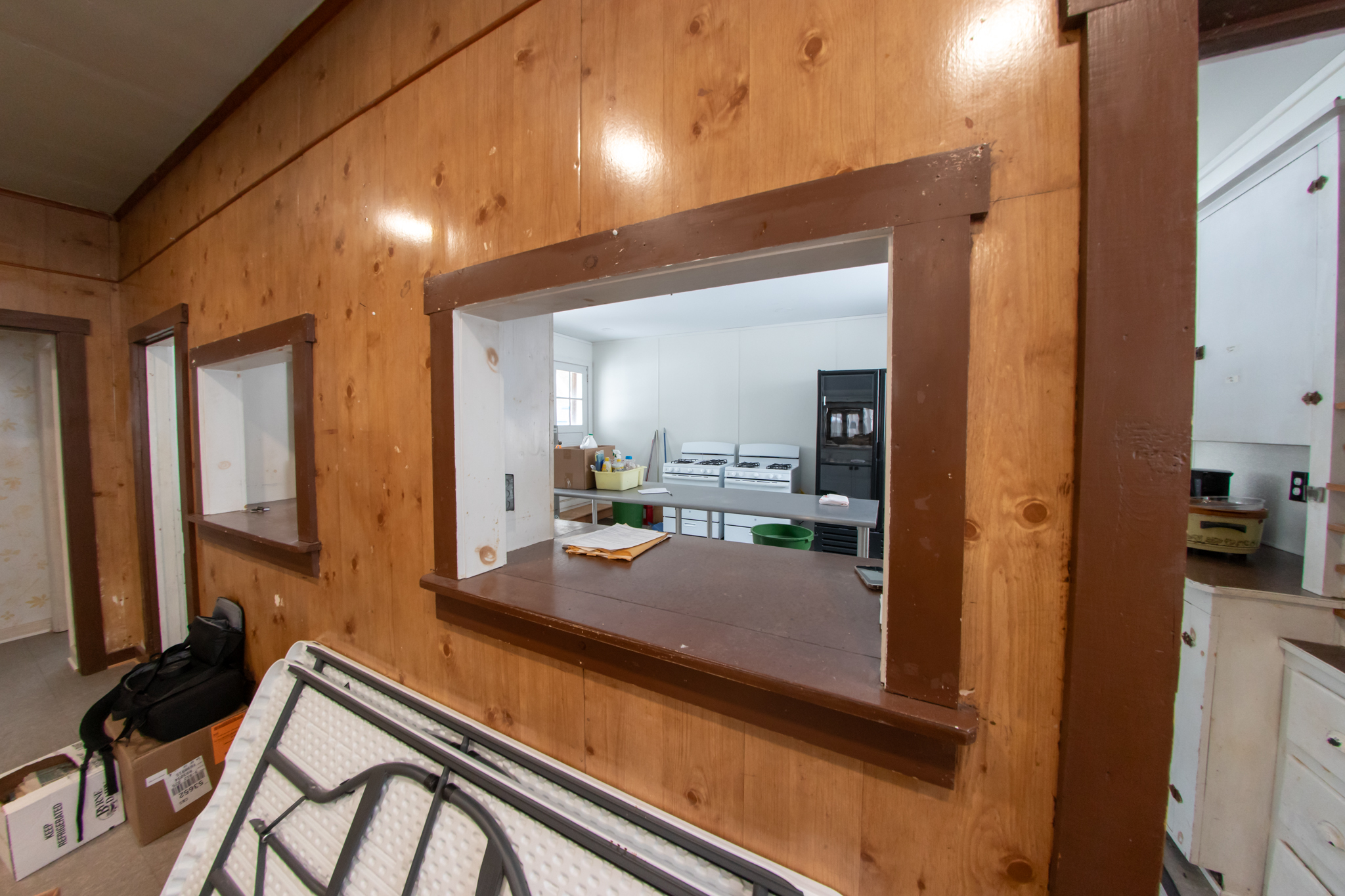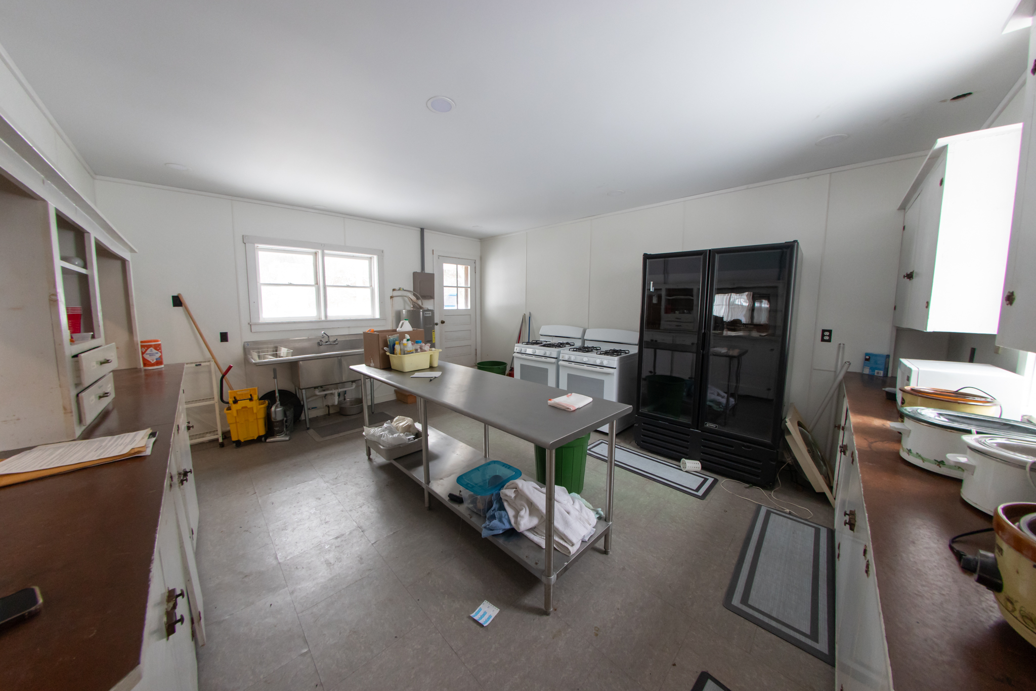 First Floor: Enter double front door of community hall to dining area with Yellow Pine floor, full front windows, 2 side and a rear exterior accesses, recessed lighting, fully furnished, large kitchen area has tile floors, wood cupboards and cabinets, sinks, fully furnished and has 2 bathrooms.