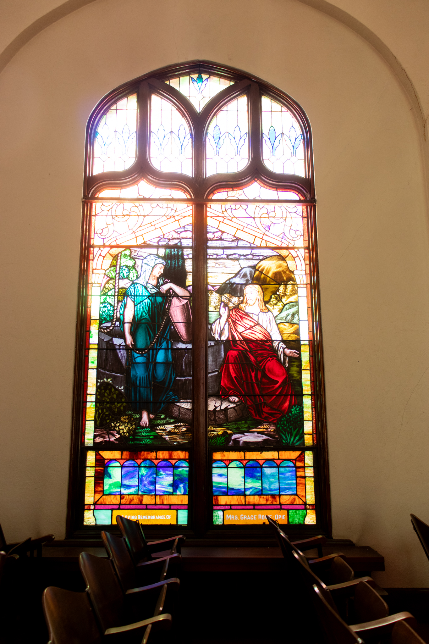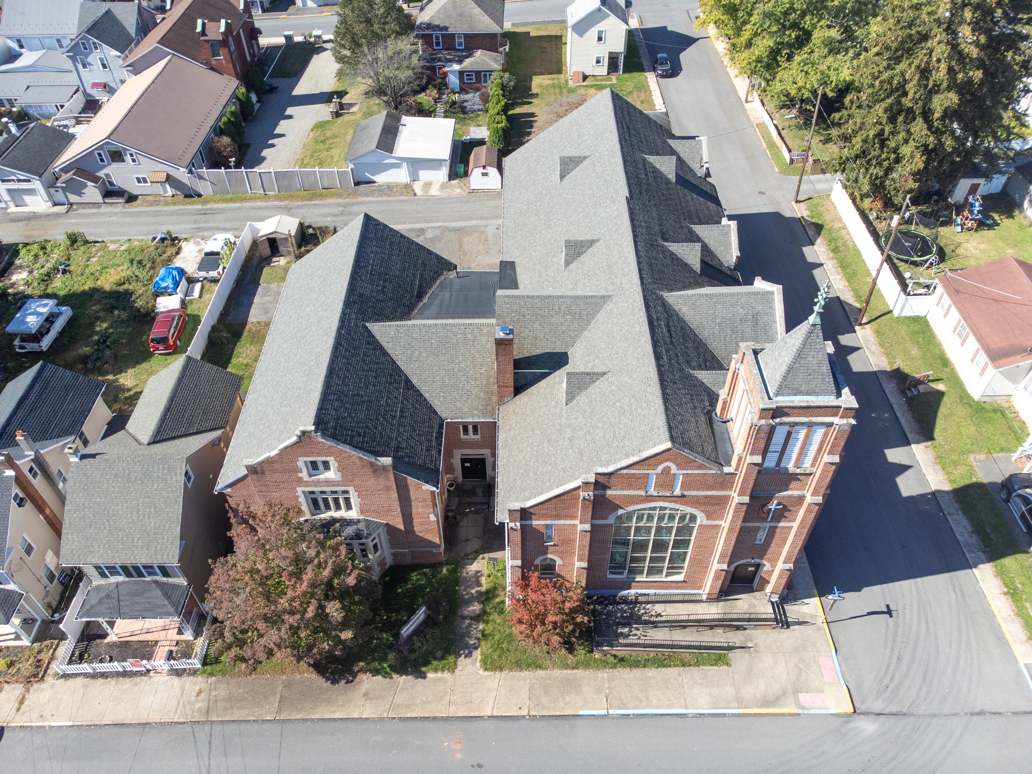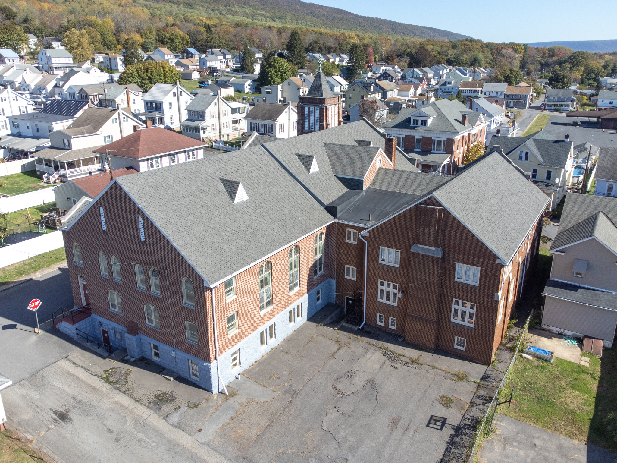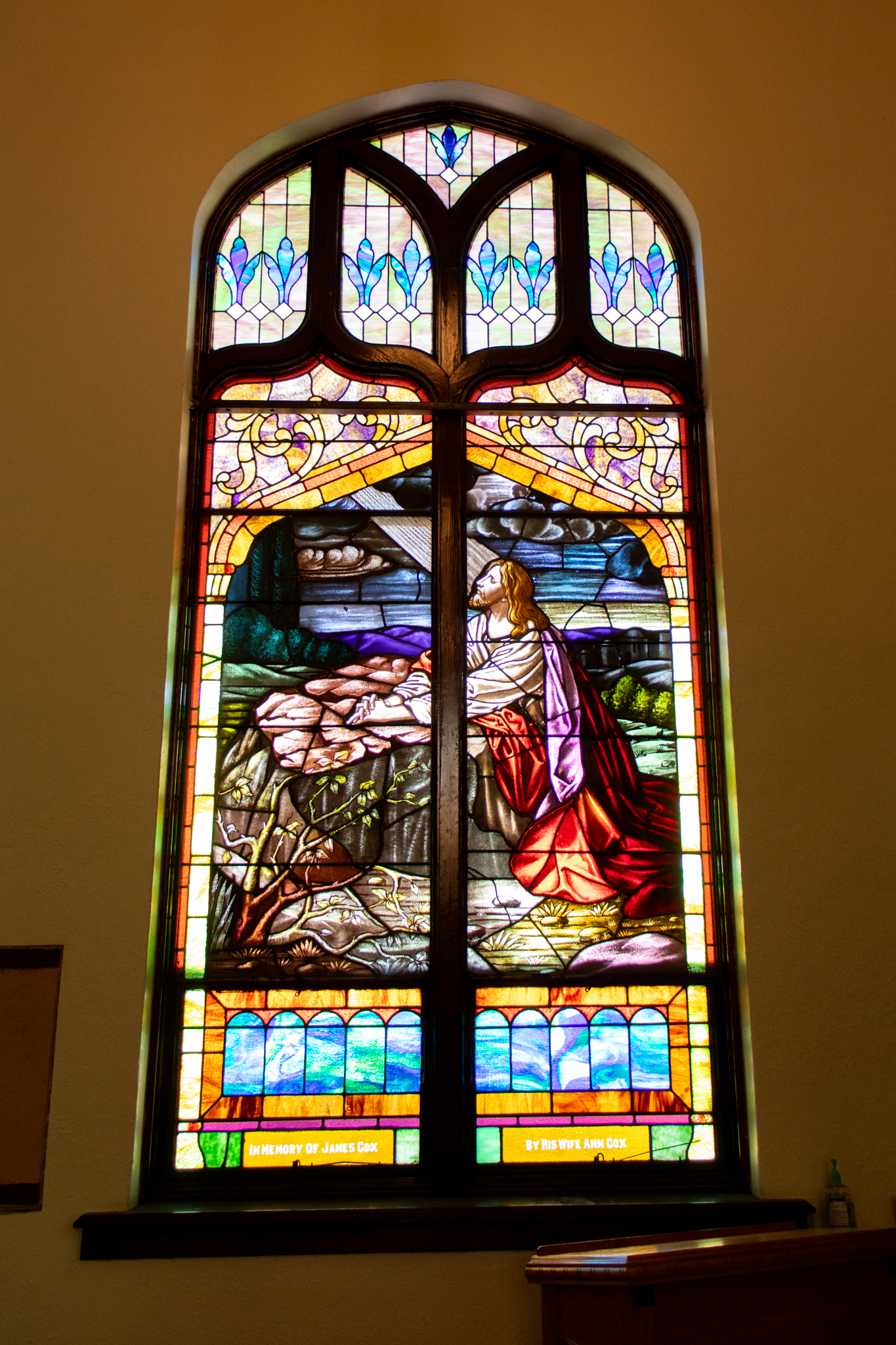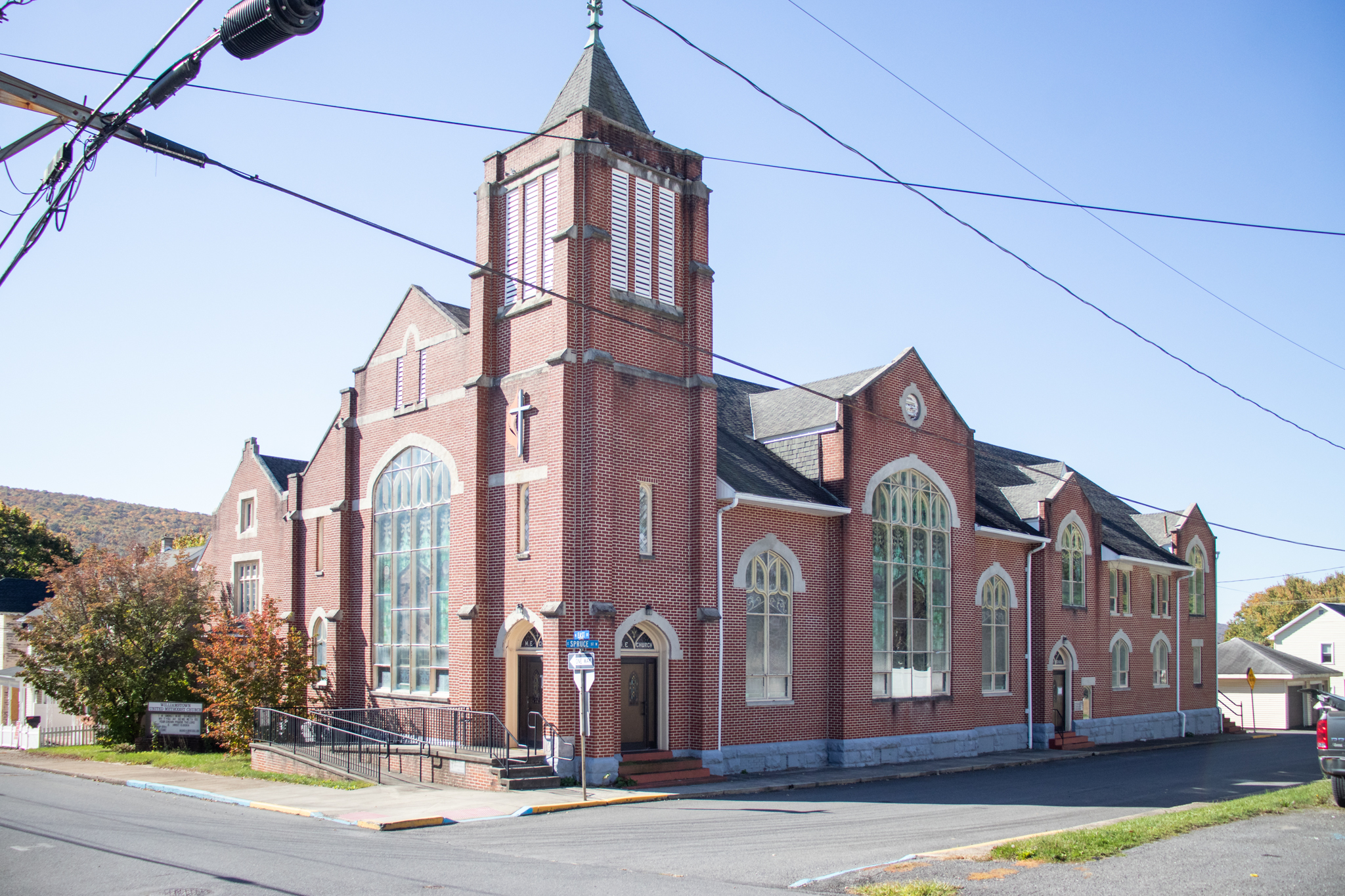 First Floor: Enter sanctuary with carpet, 5 massive stained glass windows, 11 hanging lights, ceiling fans, sound system, 31 walnut pews, pipe organ, massive sliding wood doors to Narthex with carpet, stage with maple hardwood floor, balcony, 3 classrooms with maple hardwood floor rest room, ceiling fans, 25+ leaded stained glass windows, yellow pine beamed ceiling, wood work and wainscot, access to lower level and exterior access.